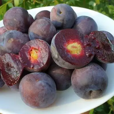 Плоды Мейнор привлекают внимание своим крупным размером — вес до 30 граммов — и темно-бордовой окраской. Форма плода плоскоокруглая, мякоть насыщенного темно-красного цвета обладает мягкой и ароматной консистенцией. Вкус этих плодов гармонично сочетает в себе сладость слив и лёгкую терпкость вишен, что делает их идеальными как для свежего потребления, так и для приготовления варенья и десертов.