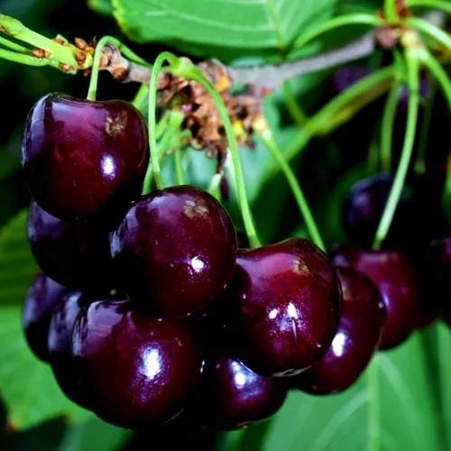 Плоды дюка Ночка привлекают внимание своим крупным размером – каждый плод весит около 7 грамм. Они отличаются широкой сердцевидной формой и темно-красной окраской, а плотная блестящая кожура защищает мякоть, которая имеет насыщенно-темный оттенок. Вкус – сладкий с легкой кислинкой, с дегустационной оценкой 4.5 балла, что подтверждает высокое качество и потребительскую привлекательность.