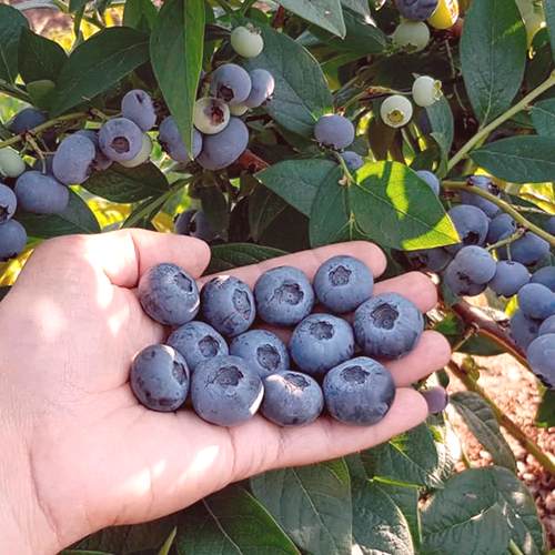 Плоды голубики Бонус впечатляют своим размером и вкусом. Ягоды достигают диаметра до 30 мм и весом 4-5 г, обладают сладким вкусом и слегка зеленоватой мякотью. Плотная кожура покрыта беловатым налетом, что делает их не только аппетитными, но и долговечными. Сорт обладает хорошей лежкостью, что особенно удобно для тех, кто планирует заготовки на зиму.