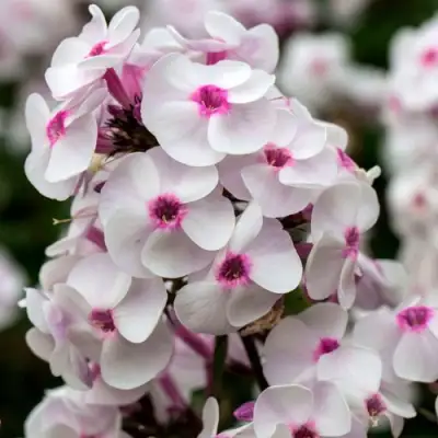 Флокс "Айс Крим" радует глаз красивыми бутонами диаметром около 3 см. Основная окраска цветка — белая, с нежным малиново-розовым сердцевидным узором, что создает впечатляющий контраст и привлекает насекомых-опылителей. Кроме того, флокс обладает нежным, но выразительным ароматом, который наполняет сад сладкими нотами, создавая уютную атмосферу.