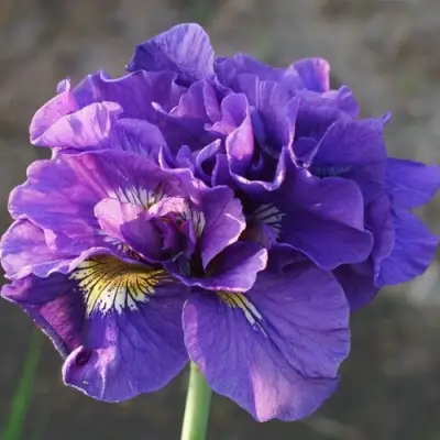 Цветение ириса «Дабл Стандарт» — это восхитительное зрелище. Цветки крупные, диаметром до 15 см, с характерной "кудрявой" структурой и волнистыми краями лепестков, которые подчеркивают их грациозность. Окраска цветов выглядит поистине великолепно: насыщенный фиолетовый цвет в сочетании с яркой желтой бородкой создает эффектный контраст, делающий растение центром притяжения в вашем саду. Махровость цветков придает им особую пушистость и утонченность, а бархатистая поверхность лепестков добавляет дополнительное обаяние.