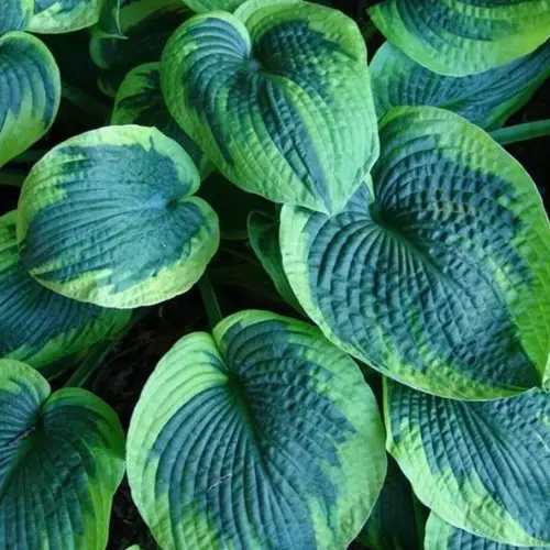 Одной из основных особенностей данного сорта является его красивые, массивные листья. Они имеют широкояйцевидную форму, достигая длины 23 см и ширины 17 см. Листовые пластины отличаются плотной и сильно морщинистой текстурой с выраженными жилками. В центре листа вы сможете насладиться зелено-голубым оттенком, а кайма выполнена в желто-зеленом цвете. Это создает великолепный контраст, который проявляется в течение всего сезона.