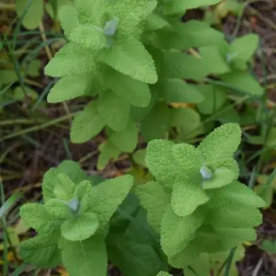 Апфелминце формирует пышный, округлый куст высотой 60–80 см и шириной до 70 см. Благодаря мощной корневой системе растение быстро разрастается, создавая зелёный ароматный массив. Листья овальные, с зазубренными краями и бархатистой поверхностью. Опушённые листья насыщенного зелёного цвета источают характерный сладковато-фруктовый запах при любом прикосновении.