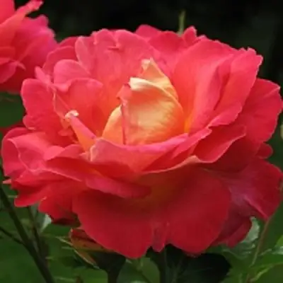 Окраска цветка Декор Арлекин неоднородная - землянично-красная с розовато-желтой оборотной стороной лепестков. Основная окраска цветка - желто-красная, а насыщенность цвета впечатляет своей яркостью. Размер цветка крупный, его диаметр составляет 9-10 см. Цветок махровый, и на одном стебле может быть от одного до трех цветков. Аромат розы Декор Арлекин слабый, но все равно ощущается нежный и приятный запах.