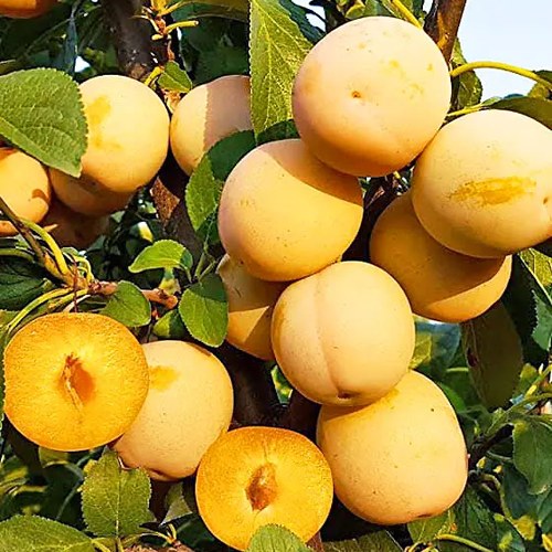 Средняя урожайность этого сорта составляет от 25 до 30 кг с одного дерева, что делает его отличным выбором для дач и загородных участков. Плоды крупные, весят 40-50 граммов и имеют округлую форму, с желтой окраской и белым восковым налетом, иногда проявляется оранжевый румянец.